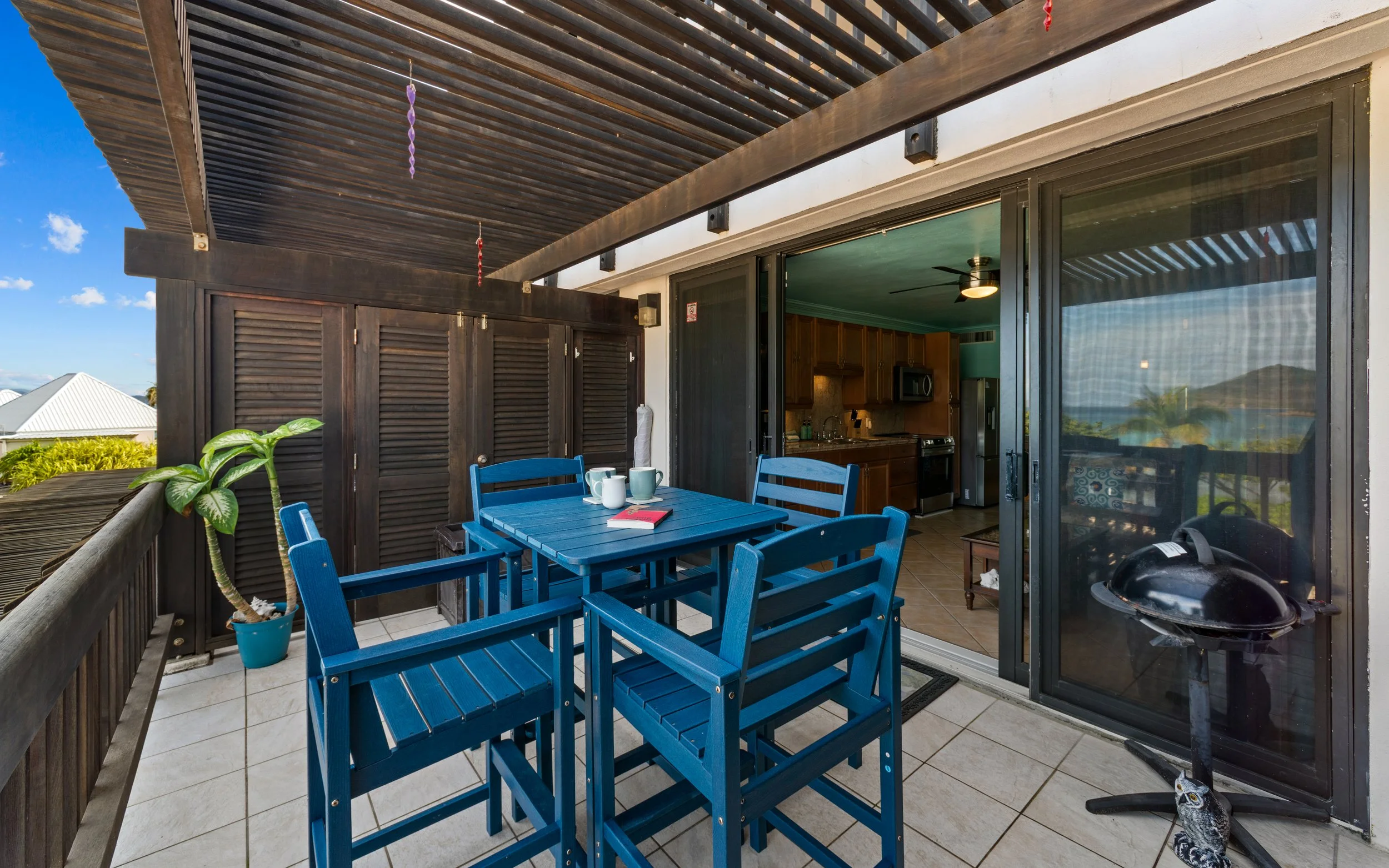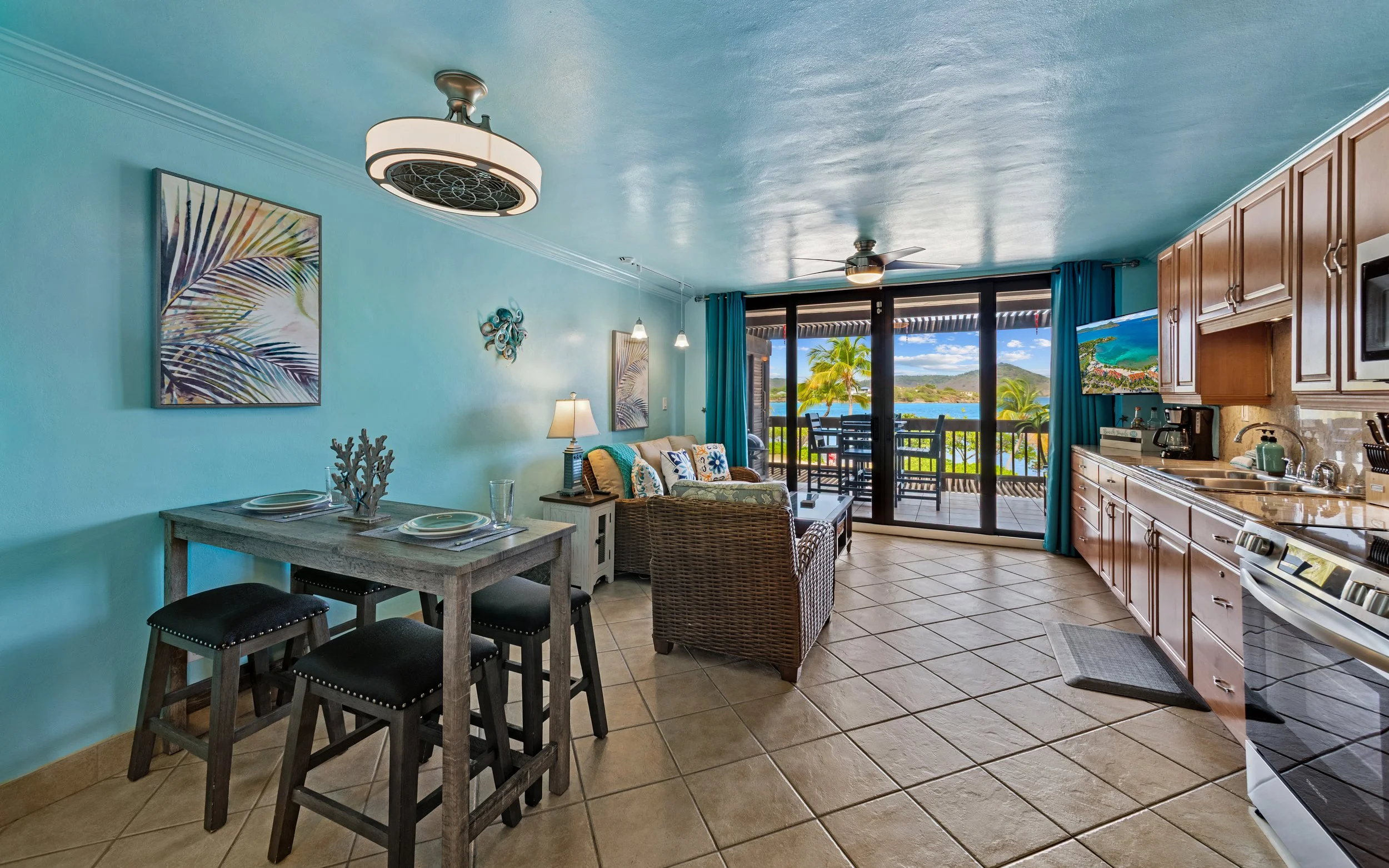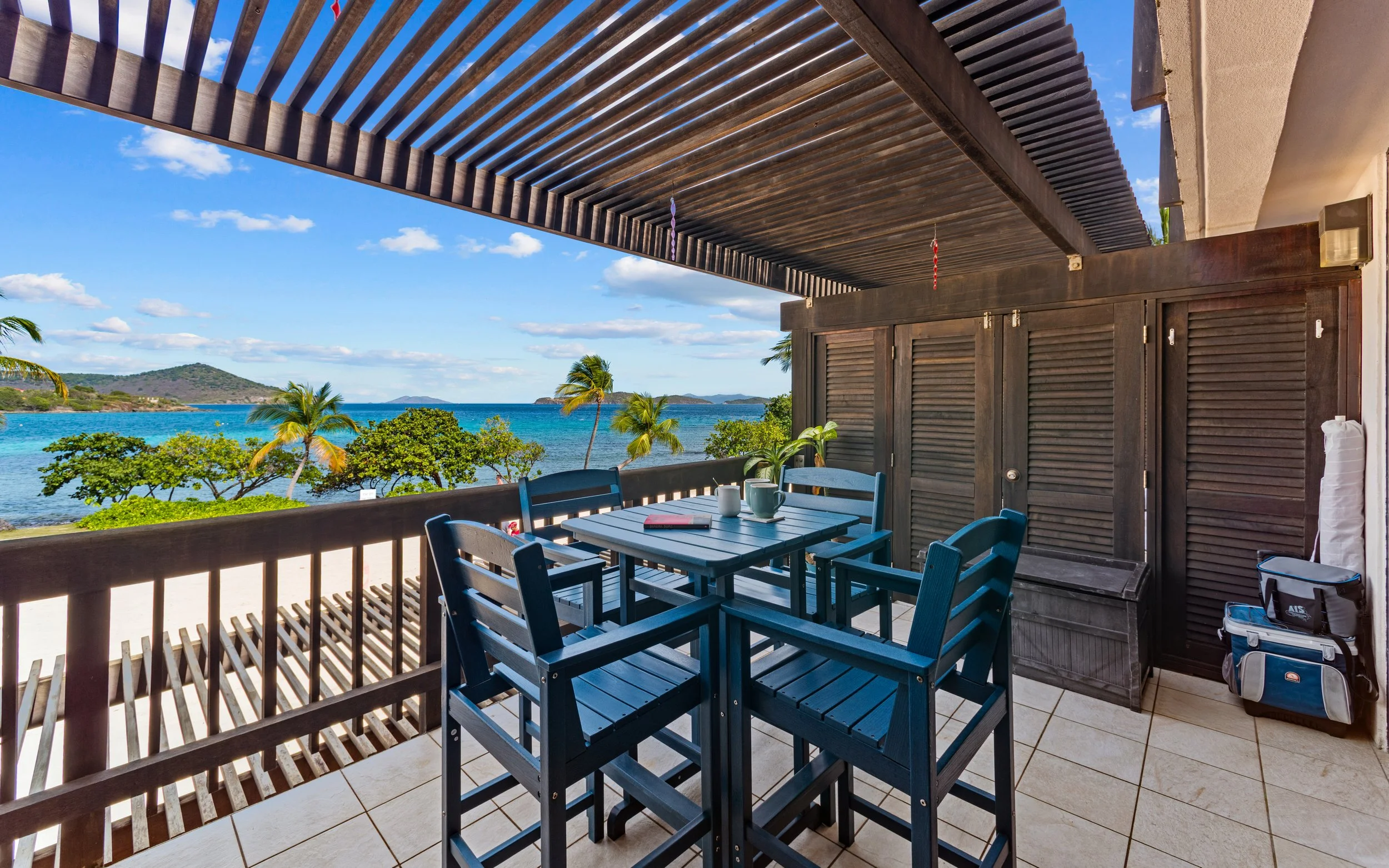 It just doesn’t get better than this BEACHFRONT condo! From the Balcony, you will be able to enjoy views of the Sapphire waters with St John in the distance. This unit sits right on the sand and only steps from the pool. You are only a 2-minute walk from 4 different dining options. The location doesn’t get any better than this! Inside this studio condo you will find one King bed and one queen sleeper sofa. This unit is perfect for a family of 4. There is a sliding door that will block off the bed from the living room for privacy. This unit is located in building C. If you are traveling with another family, check out IRIE Bliss- it is directly beside IRIE Tides.